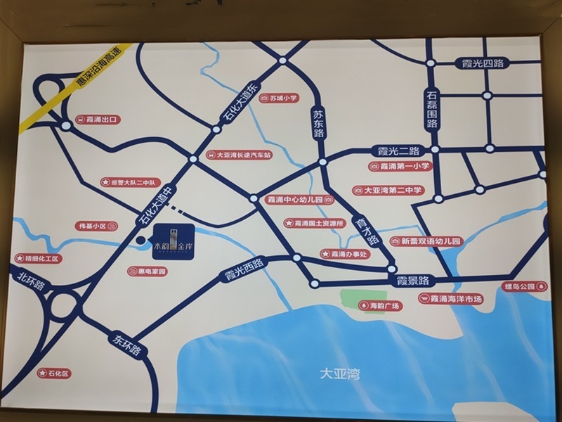水韵金岸名苑位于惠州大亚湾大亚湾霞涌石化大道中7号,项目占地14123平方米,总建筑面积约为5万平方米,共426套房,户型有约50平方米一房,约62平米1+1房,约79平米2+1房,约90平方米的2+1房,一应俱全,投资、居住均可。各户型结构合理,通风采光俱佳。5层以上更可看海。