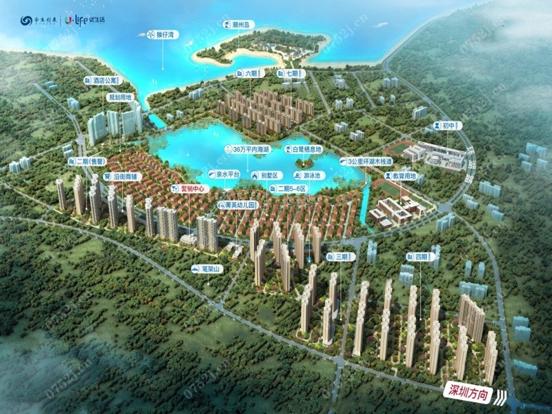 合生滨海城项目位于惠州大亚湾区澳头镇大涌路,属于临深地段,占地面积约68万方,建筑面积约232万方,分为七期开发;项目三面环山,一面临海,中间内拥36万平天然内海湖;项目匠造舒适洋房、四层联排等多种业态,打造精英幼儿园(建设中)、游泳池(建设中)、3公里环湖木栈道(规划)、滨海度假酒店(规划中)等丰盛配套,集休闲、度假、养老、养生于一体。以“优质生活,完美体现”为主题,以提升城市生活方式与人居品质为己任,用心构筑品质个性人居、优质服务以及周全无忧的配套设施,为湾区现代宜居生活树立典范。