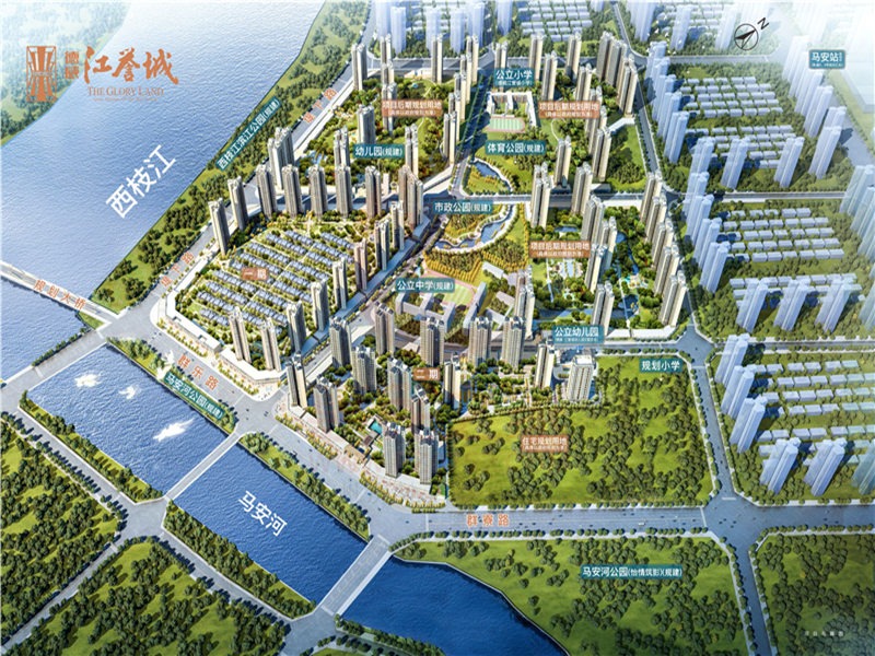 德威·江誉城,踞金山湖东、西枝江畔(惠城区三环东路以南,惠州大道以西),隔江与金山湖岛相望,距离金山湖岛1.5公里,毗邻惠州大道、三环路、惠大高速、轨道2、3号线交汇处(马安站)、惠州机场,立体交通网络通达全城、联结粤港澳大湾区乃至世界。德威·江誉城,拢聚1江1河4公园优渥生态资源,揽胜西枝江、马安河、西枝江滨江公园、马安河公园、规划体育公园、市政公园。