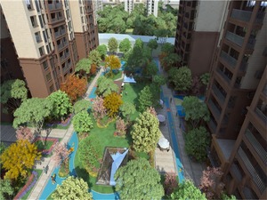 正黄金色云庭总占地面积约 2 万㎡,总建面约 10 万㎡,容积率 4.1,绿化率 30%。项目整体采用了围合式布局和行列式布局并重的规划,同时,楼栋间距超46米,不仅保证了户户足够的通风采光,同时也保证了项目园林景观最大化,景观视野不受遮挡。项目园林兼具观赏性和功能性,不仅保证了观赏性,同时也打造成全龄化社区,促进全民运动,全民交流。项目规划有欢乐海洋游乐园、健康家园广场、有氧健康跑道、休闲凉亭、风情商业街等配套。项目采用人车分流,由4栋(其中1-2栋为两单元)两梯四户的 31-33 层的阳光高层组成,规划总户数为 755套,我们采用围合式的设计,每一栋楼都是东南朝向,项目户型经过多方设计的打造,不仅降低了户型的公摊率,而且保证了公共空间的采光通风。此外,也极大的突出了户型的可实用性。