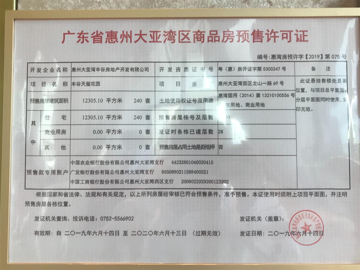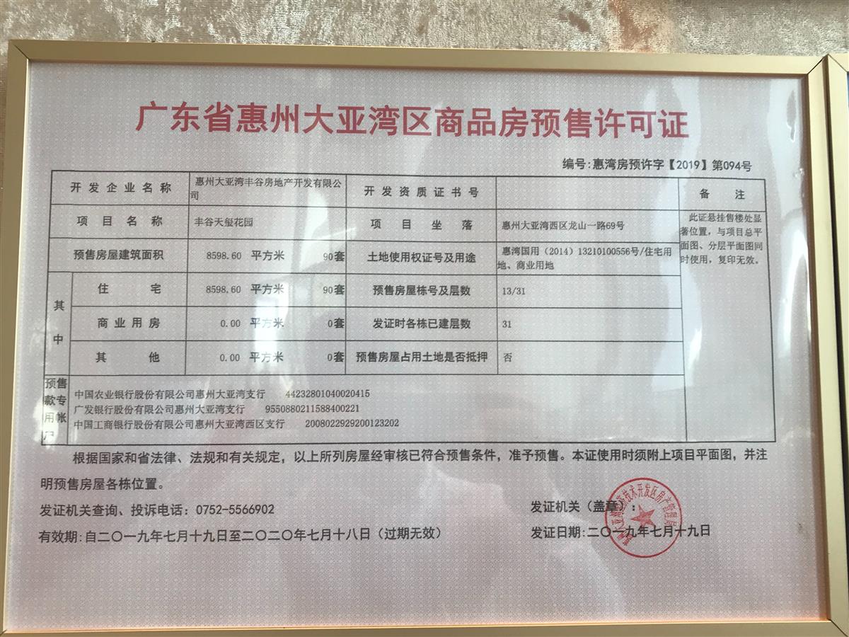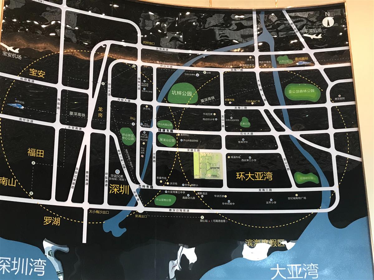 惠州丰谷天玺花园位于惠州大亚湾龙山一路敏华工业城斜对面。临深双铁口(14和16号地铁线),高铁坪山站,本项目占地9万,建面38万平米打造临深高端项目,小区集幼儿园,办公楼,商业,公寓,高层洋房于一体的超级大盘。
