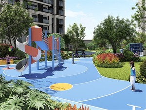 四大主题空间,构筑全龄人居新模式:童乐造梦游乐场(趣味涂鸦、活力爬坡 、玩趣构筑、动力跑道等儿童设施)、成年运动场(健康跑道、羽毛球场、篮球场、运动加油站等)、长者颐乐空间(老人健身、休憩座椅等多项设施)、架空层泛会所(洽谈会客厅,轻运动场所,儿童游乐空间,长者棋牌室等功能空间)