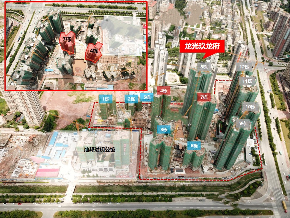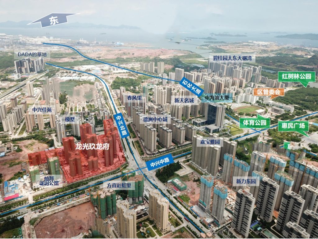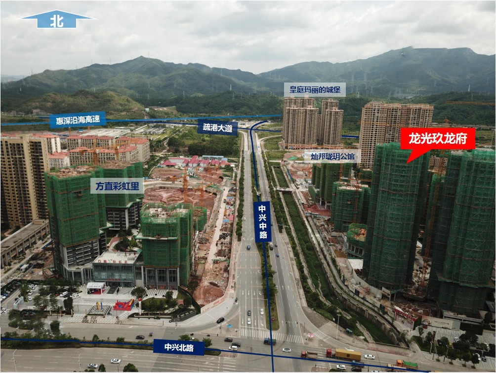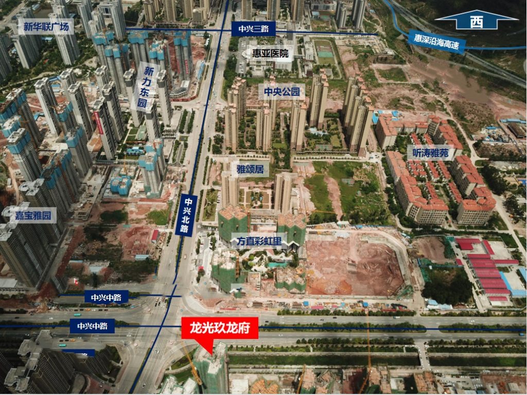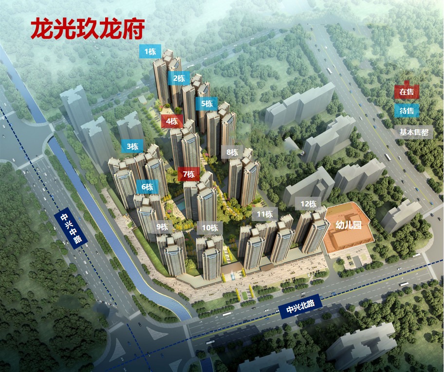 龙光玖龙府是龙光地产在惠湾区域打造的"玖"系代表项目之一。总占地面积约5.6万㎡,总建筑面积23万㎡,容积率3.0,绿化率30%,整体共由12栋高层住宅组成、1栋自配12班幼儿园和商业裙楼组成,户型面积涵盖87-126㎡2-4房,总房源约1636户,停车位1706个,物管为龙光物业。首批高层于2019年1月入市,目前处于顺销中,均价1.3万/㎡(带装修)。