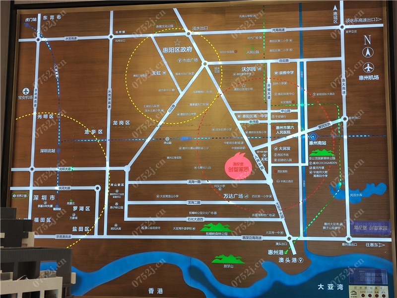 海伦堡·创智家园位于位于惠州市大亚湾西区人民六路,地处精端区域,大亚湾西区(本案所在)与坪山接壤,区位优势明显,势必将成为深圳东进战略下的首站。双轨道三高速多维立体式交通,尽得发展利好。